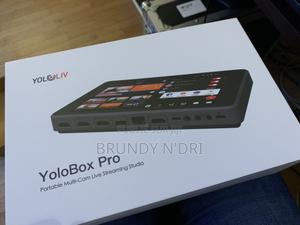 YoloBox Pro de YoloLiv est un studio de production vidéo tout-en-un portable qui combine un mélangeur vidéo, un encodeur/streamer, un moniteur et un enregistreur, permettant une diffusion en direct multi-caméras autonome vers des plateformes comme YouTube et Facebook.