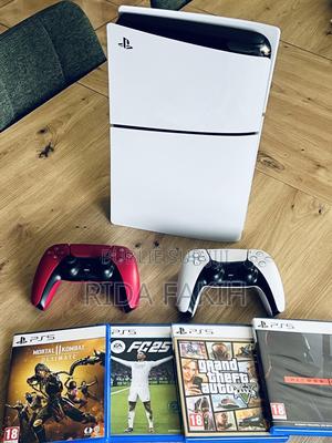 PS5 Slim "Comme Neuve" (Version Disque ) Utilisée seulement 5 fois – État 10/10 ! Pack Complet : Console PS5 Slim (Lecteur CD). 2 Manettes DualSense : État strictement neuf, aucun défaut, aucun drift, fonctionnent parfaitement (Blanche & Rouge). 4 Jeux Inclus : FC 25 , GTA V, MK11, Hitman 3. État : Zéro rayure, tout est nickel dans l'emballage.