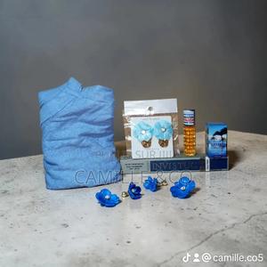 Kit de femme composé d'un top un gloss des parfums une boucle d'oreille etc