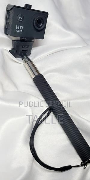 Il s'agit d'une caméra d'action générique de type "Action Cam" montée sur une perche à selfie.