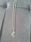 Belle chaine en argent blanc de tres bonne qualité medaille en carte d'afrique