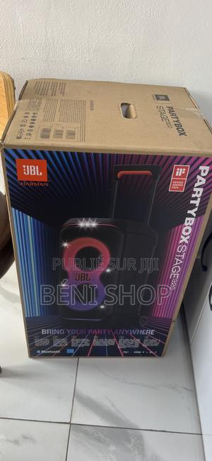 La JBL PartyBox Stage 320 est une enceinte portable de fête conçue pour offrir un son puissant et immersif avec un éclairage dynamique synchronisé à la musique. Elle est robuste, facile à déplacer grâce à sa poignée télescopique et ses grosses roues, et suffisamment résistante pour une utilisation en extérieur.
